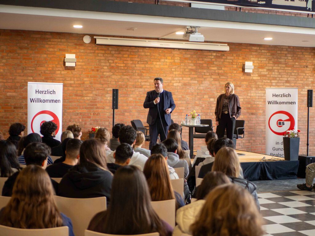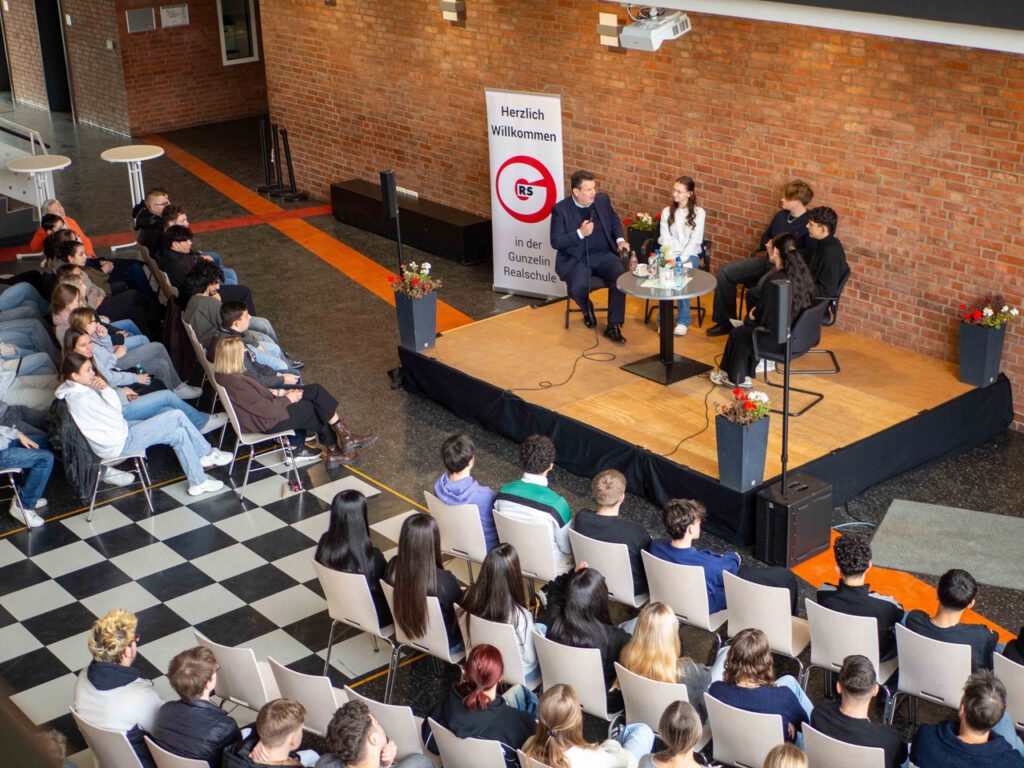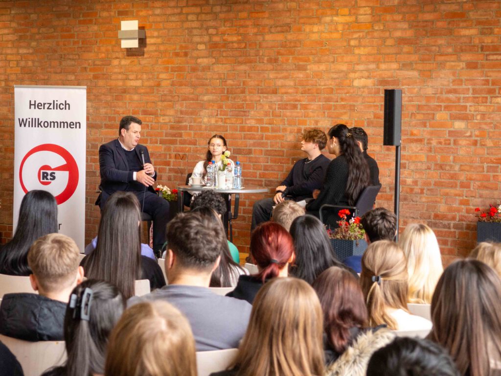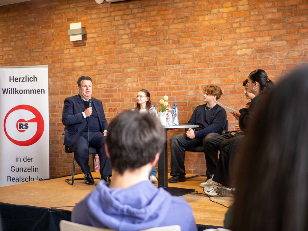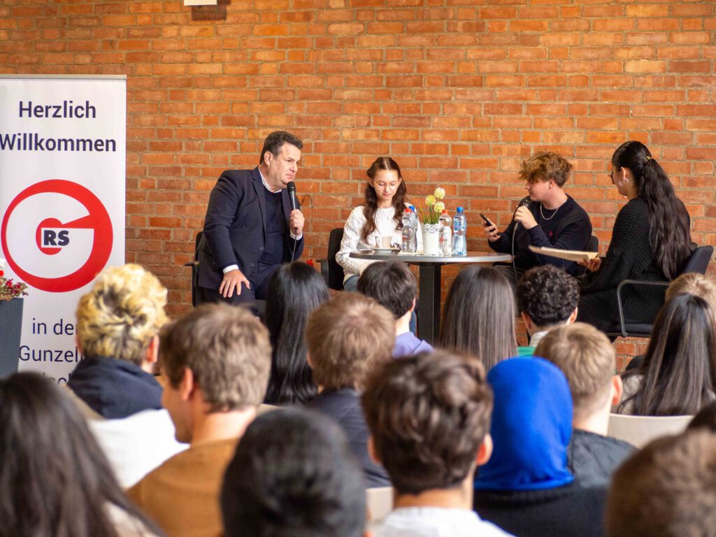 Am Mittwoch, den 19.11.2025, besuchte der ehemalige Bundesminister für Arbeit und Soziales und aktuelle Bundestagsabgeordnete Hubertus Heil die Gunzelin-Realschule, um mit Schülerinnen und Schülern der 9. und 10. Klassen ins Gespräch zu kommen. In der Aula fand eine Fragerunde statt, bei der die Jugendlichen die Möglichkeit hatten, dem Politiker Fragen zu aktuellen politischen Themen, seinem Arbeitsalltag sowie persönlichen Erfahrungen zu stellen.